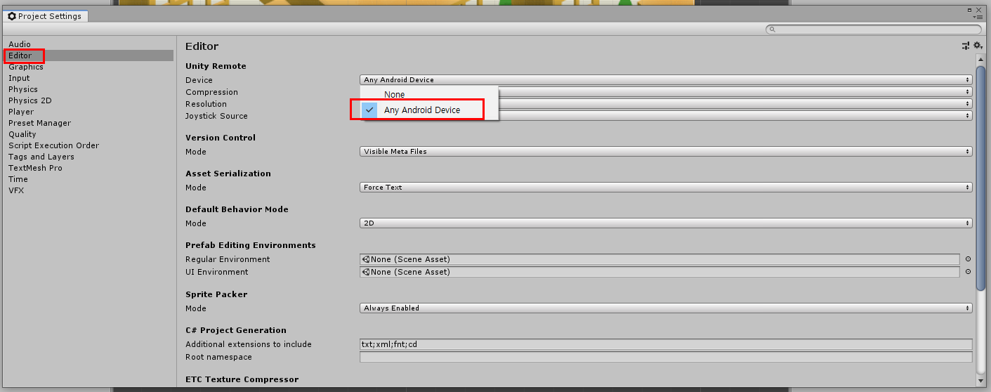 Edit > Project Settings... > Editor로 이동한다.