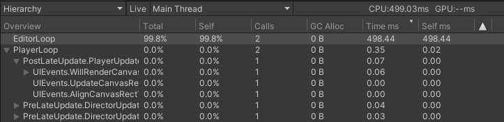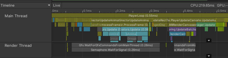 Profiler 창에서 성능 분석을 할 때, Hierachy와 Timeline 속성을 선택할 수 있다. Hierachy는 어떤 기능을 실행할 때, CPU/GPU를 어느 정도 차지하는지를 퍼센트로 보여주고 Timeline은 Thread별로 시각화하여 보여준다. 이 둘을 모두 활용한다면 무엇이 CPU를 많이 잡아먹는지 체크하기 편하다.